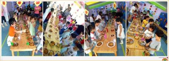 活动之前,各班教师组织幼儿通过视频、故事等手段向了解了中秋节的来历、习俗以及月饼的种类、制作方法等,让我们的孩子对中秋节这个传统文化节日有了全面的认识和了解;接着由孩子们介绍自己所带的月饼,最后就是品尝活动;当美味的月饼呈现在大家面前的时候,孩子们的口水都快要流下来了。在欢快的《爷爷为我打月饼》的音乐声中,小朋友们互相分享,吃得津津有味。